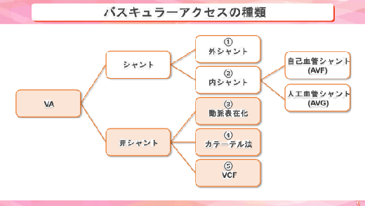 当クリニックでは非シャントアクセスとしてカフ付き長期留置型カテーテル挿入術も行いますが、他に上腕動脈の表在化や大伏在静脈VCF法などの手術を行っています。